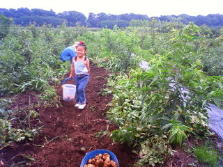 ◆今週の写真 2010 7/ 4 浦和の畑: 梅雨の季節、蒸し暑く汗がほとばしります。 今年はじゃがいもが大豊作! 知り合いに声を掛けてのじゃがいも堀り大会です。 ◆ 前の写真へ ◆トップ ◆最新情報 ◆活動案内 ◆お問い合わせ